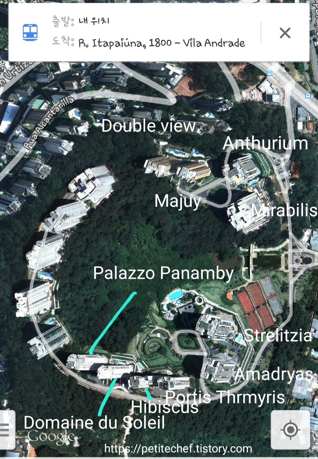 브라질 현지 부동산이 맵으로 편집해서 올려놓은 것을 토대로 구글어스 사진에 내가 직접 재편집해봄